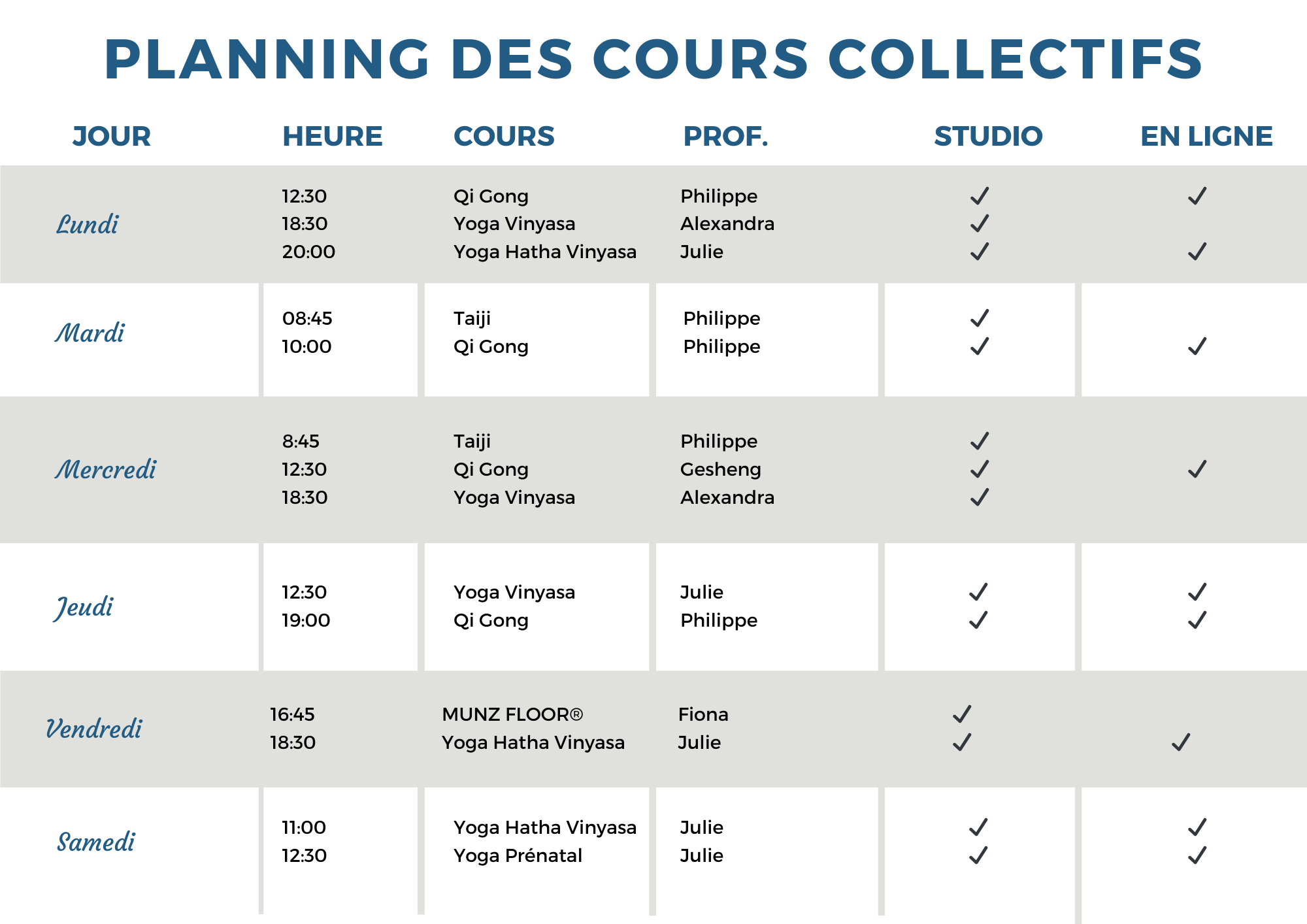 Notre planning valable dès le 8 avril 2025