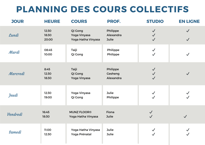 Pour les détails sur les cours et les enseignants ainsi que pour les inscriptions, visitez notre page enseignants
